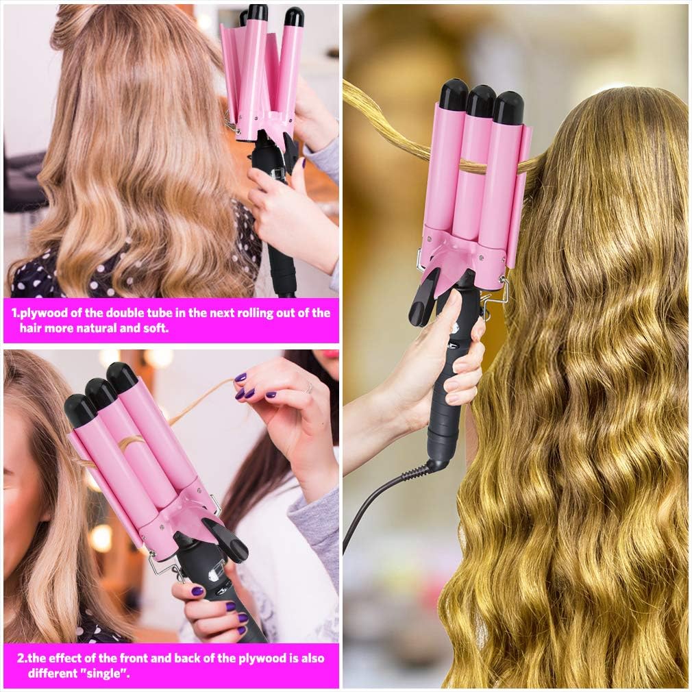 - 【Create Soft Hair Waver】: This hair waving styling tools can create natural looking curls. 3 barrels curling wand helps eliminate static, the negative ions released can make your hair more shiny and charming, enhance your hairstyle effect.
